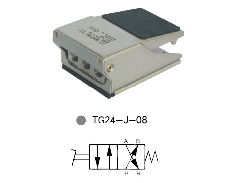 用脚踩踏的控制阀,广泛应用于各种气动系统中,操作力小,解放双手,二位三通的R、P
