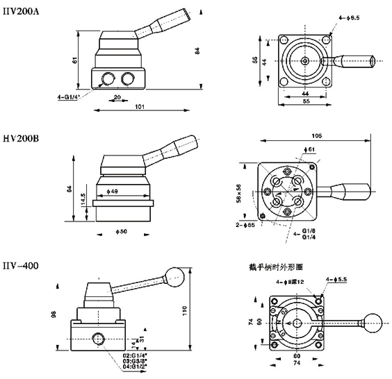 手动转阀, 小型转阀是分别采用手柄转动的换向阀, 阀的功能细分为二位三通, 三位四通和二位五通.体积小七,